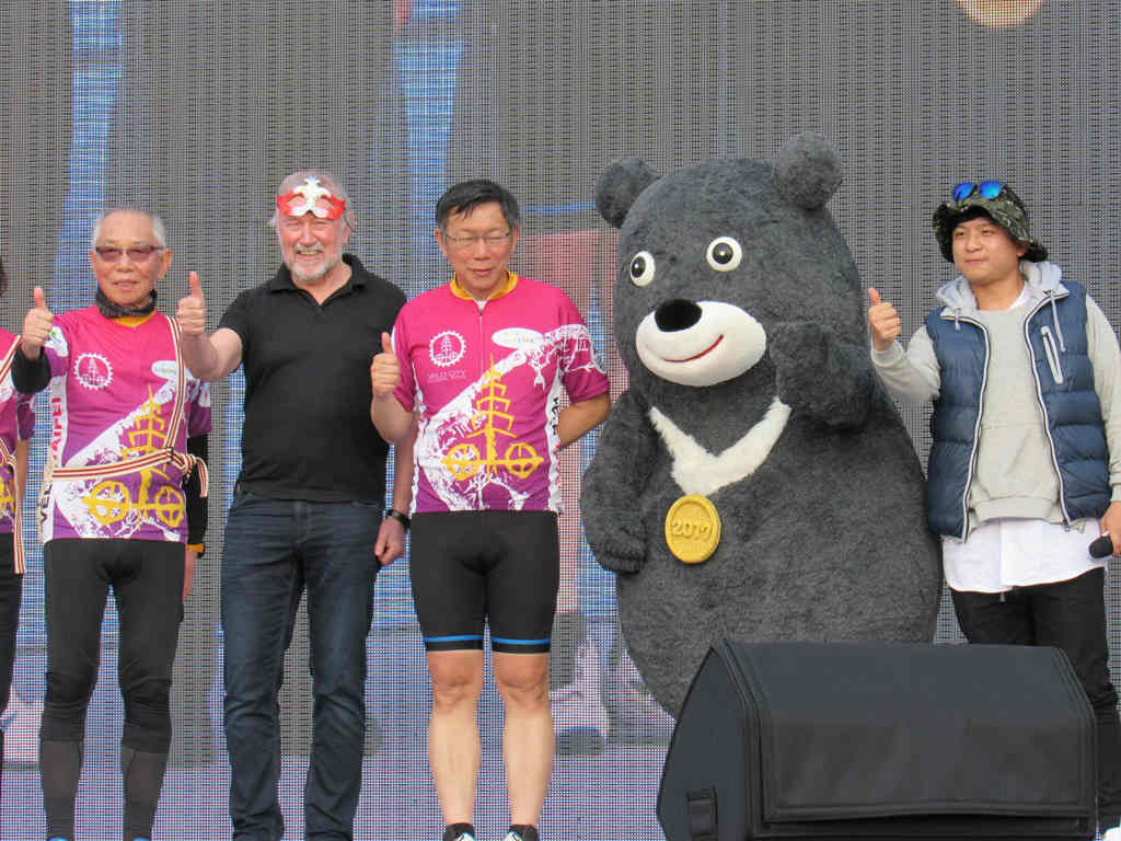 ▲市長柯P為世大運吉祥物熊讚掛金牌。(圖/臺北市政府觀光傳播局提供)