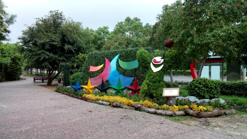 宣傳大使熊讚綠雕前進桃園地景藝術節,臺北市於9月9日至9月25日在桃園八德陂塘公園裝設世大運意象及高爾夫、籃球競賽項目運動造型綠雕,邀請大家一起來與世大運運動綠雕合照,現場服務台還有世大運荷葉扇索取,數量有限,送完為止。