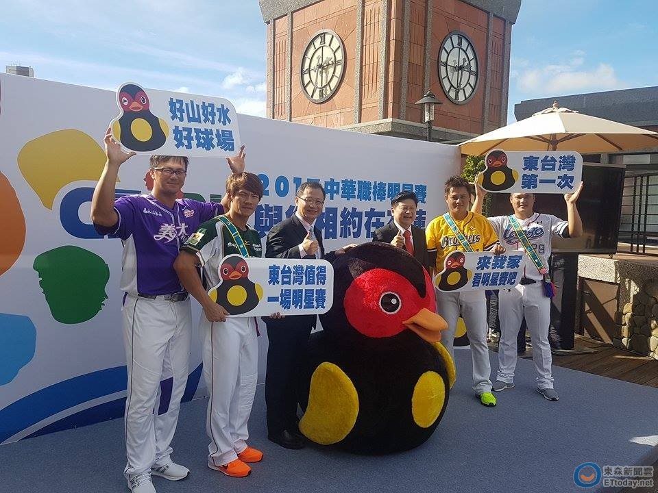 ▲中華職棒明星賽明年將首度在花蓮舉辦,邀請(左起)義大犀牛高國輝、統一獅羅國龍、中信兄弟羅國華及Lamigo桃猿陳俊秀,4位花蓮出生的球員參加記者會,歡迎球迷明年到花蓮共襄盛舉。