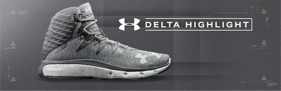 「Highlight Delta」除了全新的高筒延伸設計,在鞋領和鞋舌使用3D注模技術,提供完整包覆、自然貼合能加強腳踝保護;鞋面則採用無縫編織設計,提升透氣度、減輕重量,讓雙足在強烈的跑步訓練下依然擁有喘息的空間和輕巧的步伐;可調節式的鞋帶孔設計,加強靈活性、提升穩定度,讓腳步更自由、更舒適;雙層Charged Cushioning®能量中底,提供優異緩震、支撐性、穩固性,幫助跑者跑起步來更有依靠,讓每一步都充滿能量。