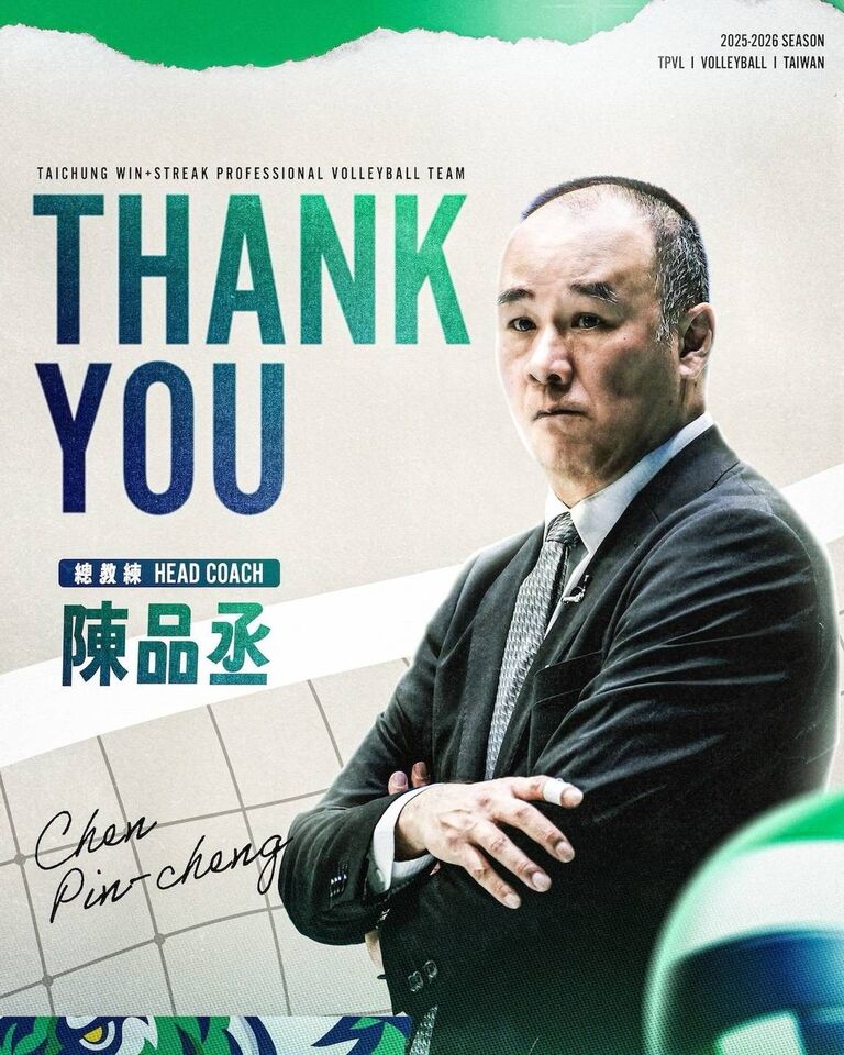 ▲TPVL台中連莊宣布總教練陳品丞離隊。(圖/翻攝自台中連莊IG)