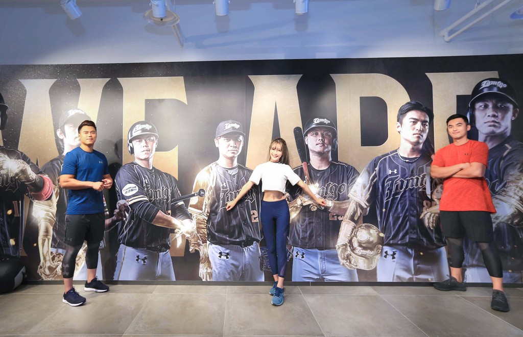 ▲Lamigo球星棒球訓練教室迫請藍寅倫與朱育賢,以及Lamigirls倪暄現身UA應援門市。(圖/品牌提供)