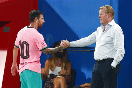 ▲梅西與巴薩主帥科曼(Ronald Koeman)。(圖/達志影像/美聯社)