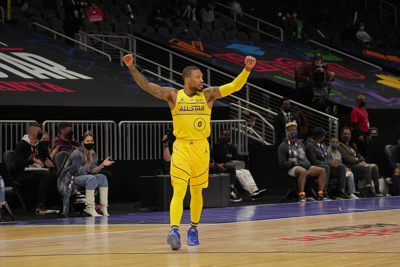 儘管里拉德因為受到傷勢困擾,沒能與柯瑞在三分球大賽交手,但兩人在全明星賽攜手飆Logo shot,讓球迷看得很過癮。兩人各砍進8顆三分球,「小李」更在末節上演「Dame Time」,包辦了詹姆斯隊最後11分,連砍了3顆三分球,包括致勝的40呎超遠外線。