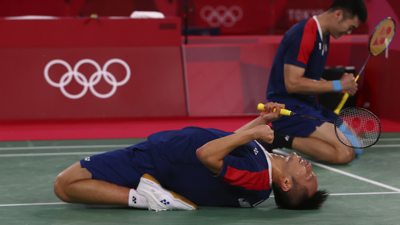 我國羽球最強男雙李洋/王齊麟30日4強賽對上世界第2的印尼「大魔王」組合阿赫桑(Mohammad AHSAN)/塞蒂亞萬(Hendra SETIAWAN),只花28分鐘就以直落二(21:11、21:10)擊敗對手,前進金牌戰,再寫台灣奧運男雙紀錄。「麟洋配」賽後再度一正一反「聖筊」慶祝姿勢。李洋直呼:「小天(周天成)感謝主,我們感謝行天宮。」