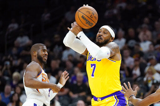 湖人在第2場熱身賽面對上季阻斷他們衛冕之路的太陽,3巨頭仍只有當家長人戴維斯(Anthony Davis)上陣,但他手感不佳,14投僅5中,攻下14分、8籃板和2助攻;與他一起登上先發的還有37歲老將安東尼(Carmelo Anthony),「甜瓜」首秀貢獻8分,不過洛城第3節被打爆,終場以105比117落敗。