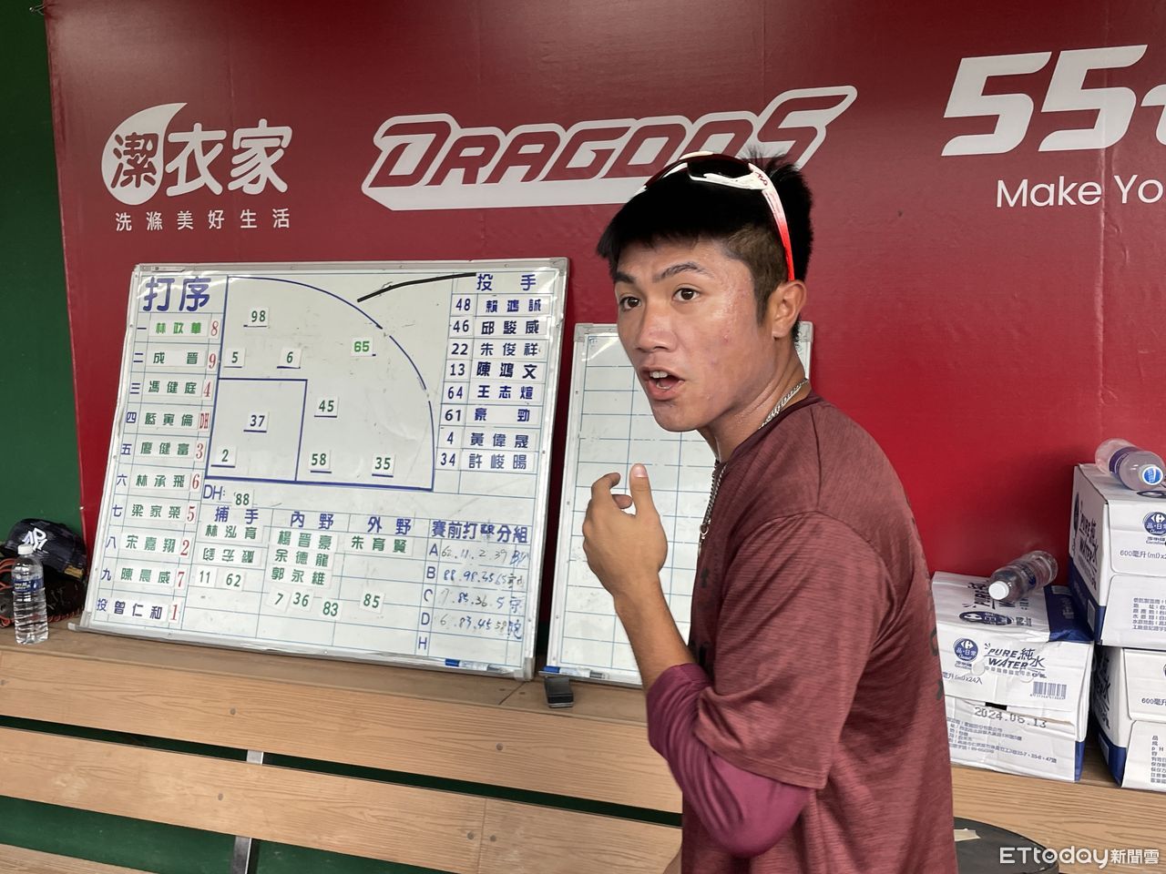 ▲樂天桃猿林政華看到自己剛升一軍就先發第一棒嚇一跳。(圖/記者楊舒帆攝)