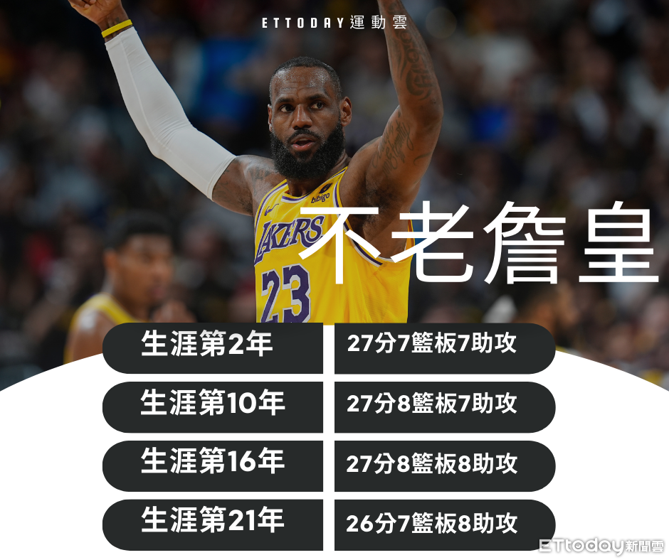 ▲詹皇的不老傳奇,21年如一日數據。(圖/記者游郁香製)