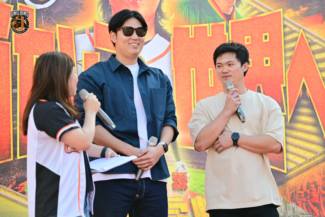 歡送會開放球迷提問,有球迷開玩笑問,「如果可以選擇,想要穿火腿球衣還是統一獅球衣。」古林睿煬笑回,「有沒有很厲害的球迷,可以幫我縫一半火腿、一半統一的球衣!」