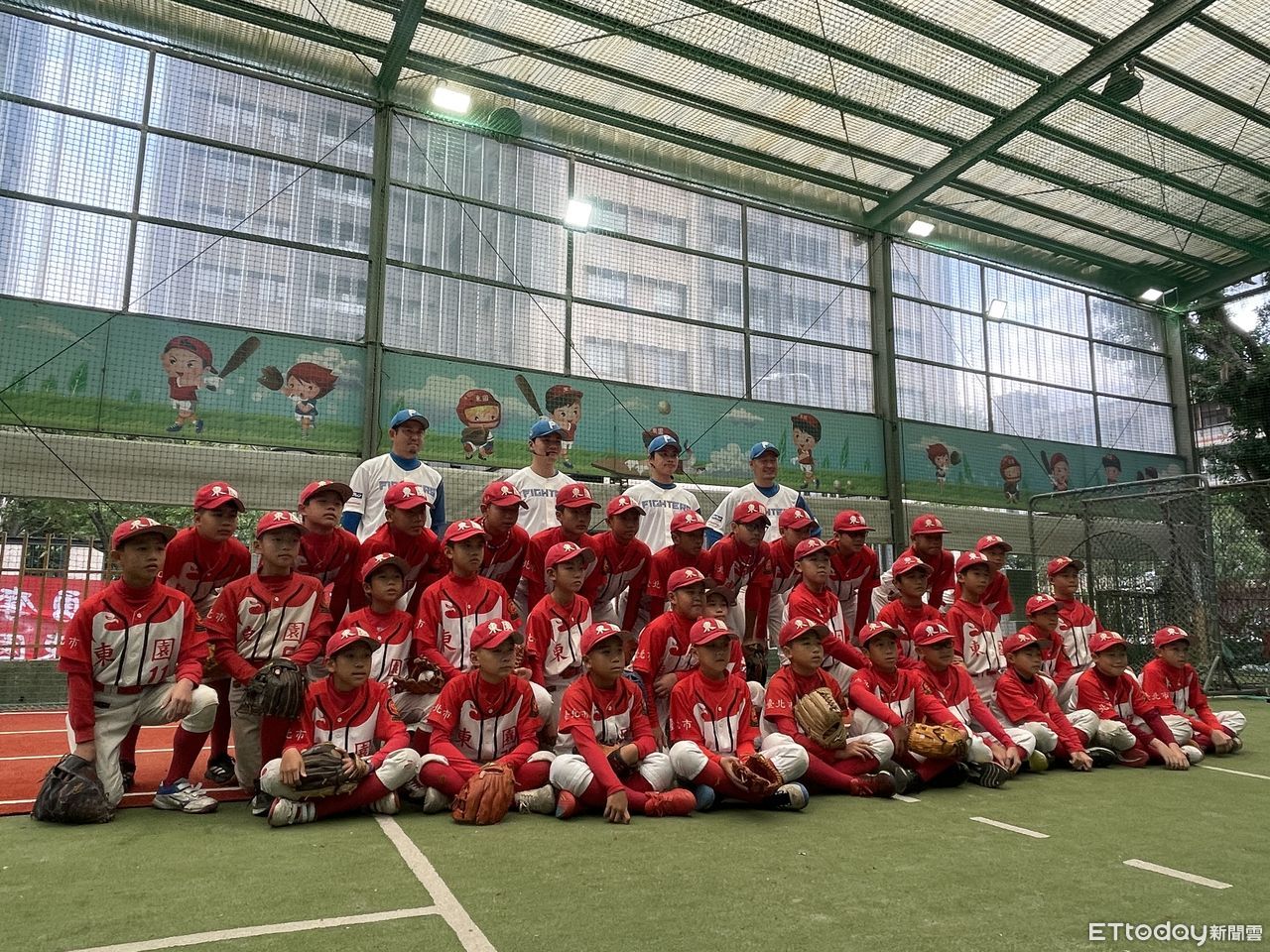 ▲清宮幸太郎與孫易磊到訪東園國小指導小球員。(圖/記者楊舒帆攝)