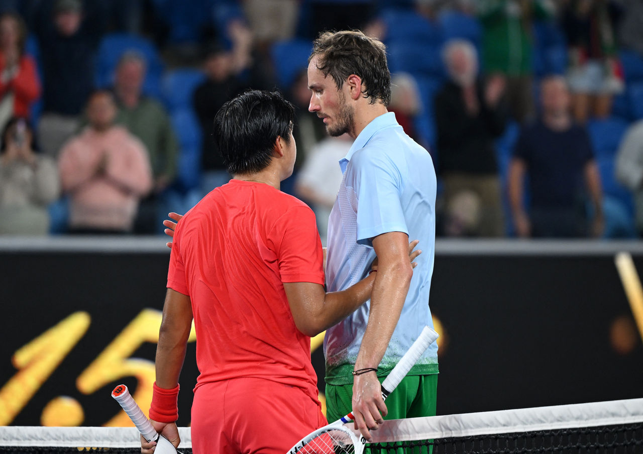 法新社報導,世界排名第5的梅迪維夫(Daniil Medvedev)昨天登場對上世界排名第121的勒納.田,比賽過程扣人心弦,兩人鏖戰4小時48小時後,終場勒納.田以6比3、7比6(7比4)、6比7(8比10)、1比6、7比6(10比7)取勝。