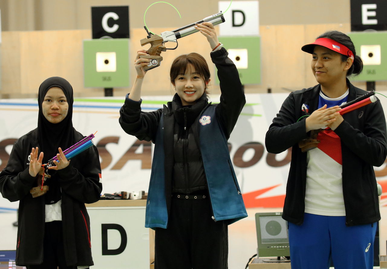 第46屆東南亞射擊錦標賽今(17)日在桃園公西靶場登場,中華隊首日10公尺空氣手槍開出紅盤,囊括個人與團體共6面金牌。「證件妹」吳佳穎擊敗學妹劉恆妤,拿下女子公開組金牌;男子公開組由張潞擊敗小老弟謝翔宸稱王。