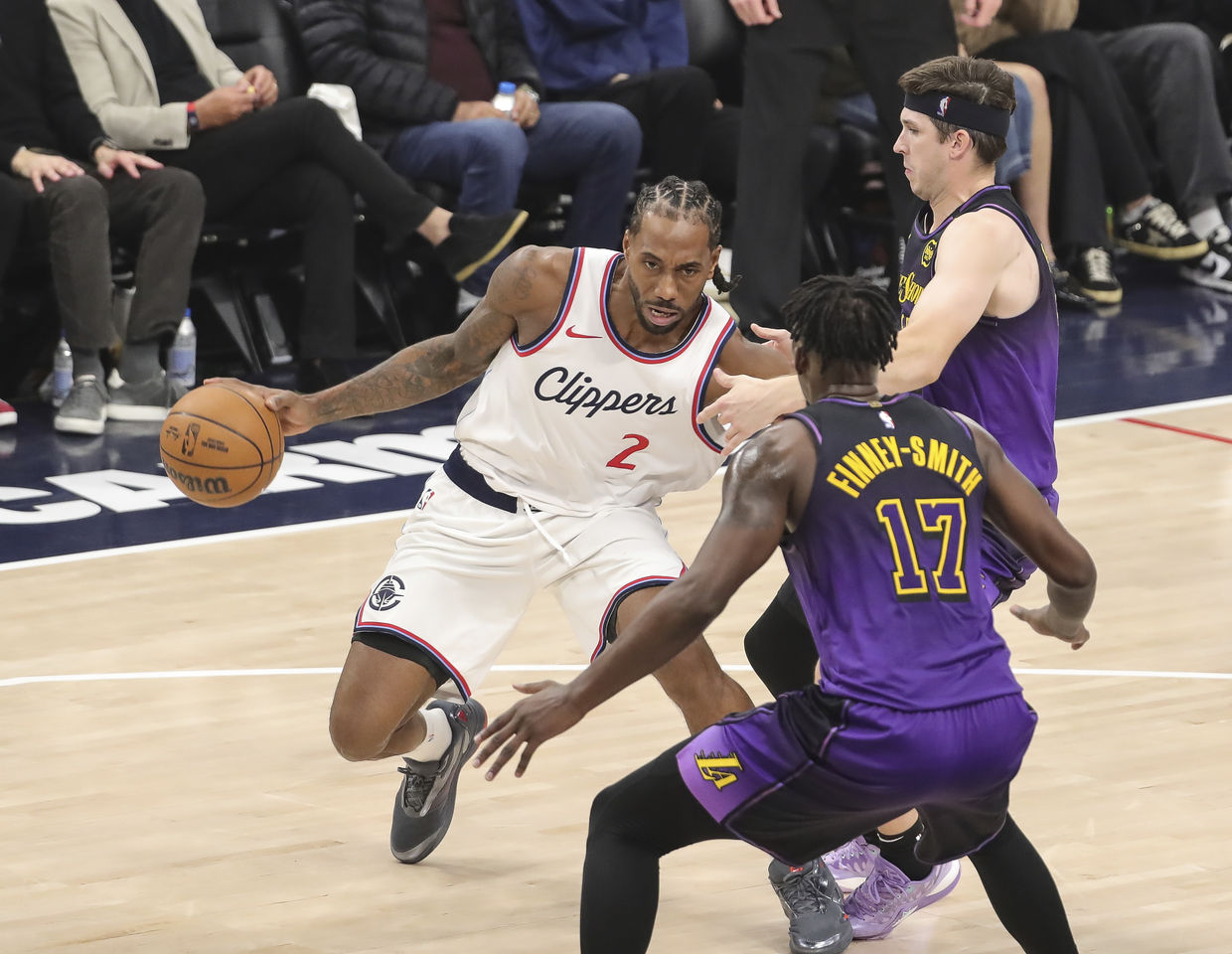 2屆FMVP雷納德(Kawhi Leonard)從膝傷中回歸第5戰,在快艇新主場Intuit Dome交手同城勁敵湖人,上場24分鐘就以13投9中高效攻下19分、4助攻和1籃板,次節開局還晃倒了「鄉村Kobe」里夫斯(Austin Reaves),終結了對方的腳踝,率隊以116比102取勝。