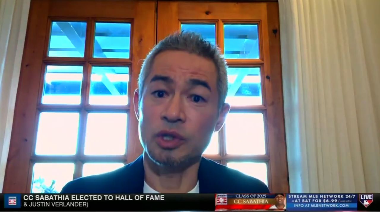 ▲鈴木一朗入選名人堂視訊訪問。(圖/截自X:MLB Network)