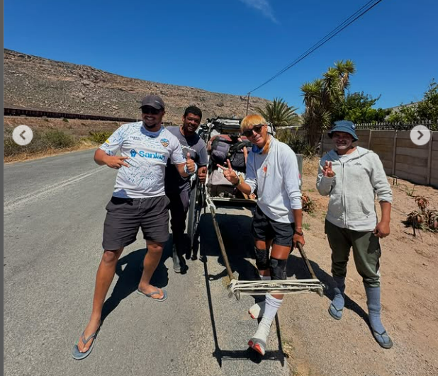 34歲日本男子鈴木悠司徒步拉著人力車,自肯亞一路向南至南非,今天抵達開普敦(Cape Town),完成這趟超過6000公里的長途跋涉之旅。