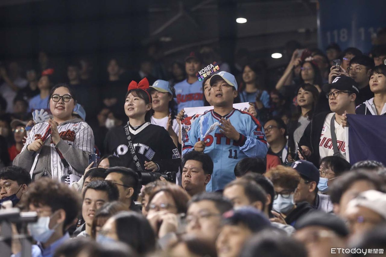 ▲台韓交流賽,韓職樂天巨人球迷場邊應援。(圖/記者林敬旻攝)
