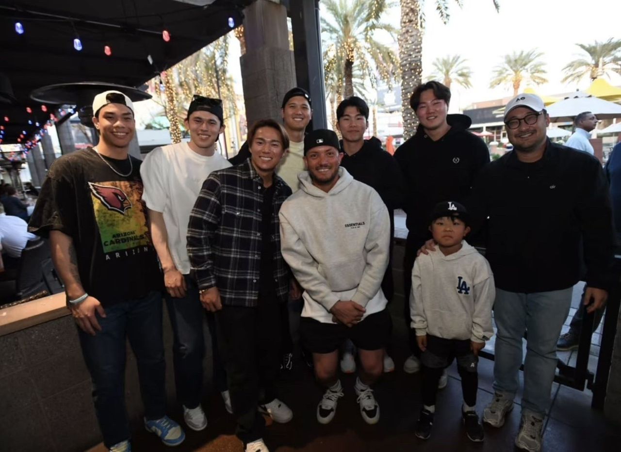 洛杉磯道奇近日舉辦一年一度的雞翅大賽,隊中亞洲球員齊聚一堂,並且在道奇專屬攝影師Jon SooHoo的鏡頭中留下合照,照片中除了有當家日籍球星大谷翔平、山本由伸、佐佐木朗希外,還有從韓職重磅加盟的金慧成和19歲火球男張賢碩,而肩靠肩站在佐佐木朗希身邊、身材壯碩的年輕小將,就是去年被道奇以75萬美元簽下的台灣18歲選手柯敬賢,全員面露笑容,看起來相當開心。