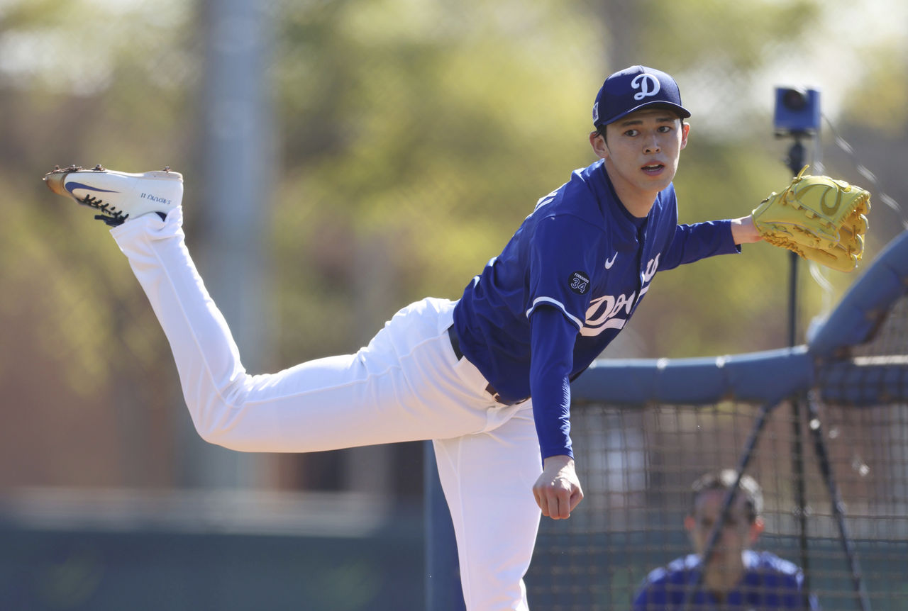 在大谷翔平投、山本由伸、總教練羅伯斯(Dave Roberts)、球隊總裁弗里德曼(Andrew Friedman)等人一起關注下,佐佐木迎來他的「初登板」。