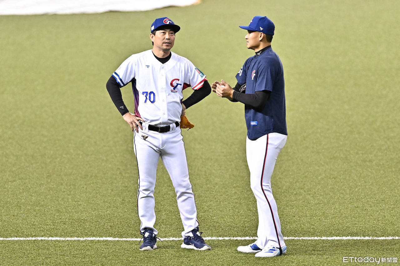 ▲經典賽資格賽投手教練林岳平與徐若熙。(圖/記者李毓康攝)