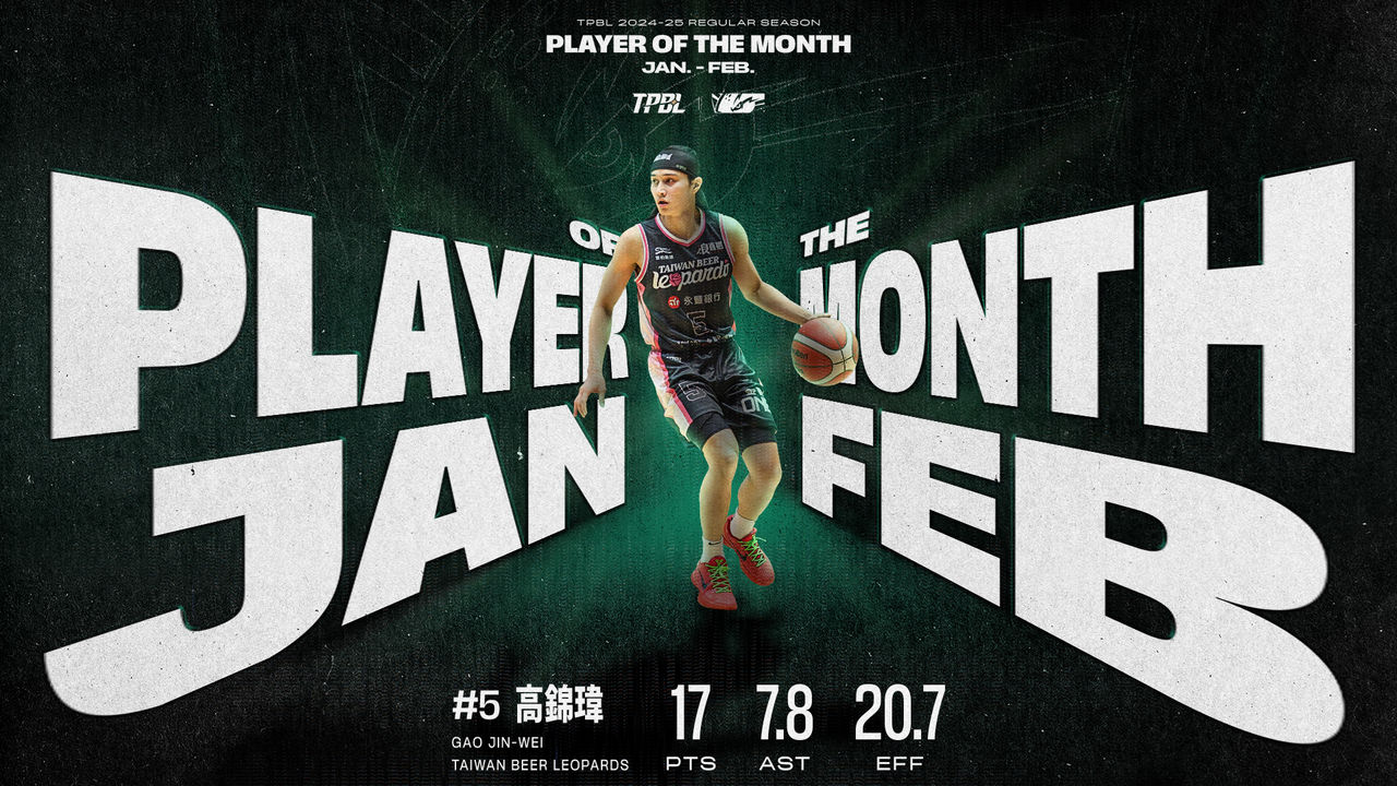 高錦瑋在十二月以全能表現奪下單月MVP後,一、二月延續高水準發揮,在六場比賽中持續展現控場能力與關鍵時刻的決勝氣勢。1月4日,他以全隊最高的效率值33,率隊擊敗夢想家;2月8日,在主場迎戰聯盟龍頭國王,即便得分不算突出,卻以+25的正負值高居全場第一,帶領球隊大勝對手;隔日再戰夢想家,他在讀秒階段投進關鍵三分球,助隊驚險取勝,充分展現其關鍵先生的價值。