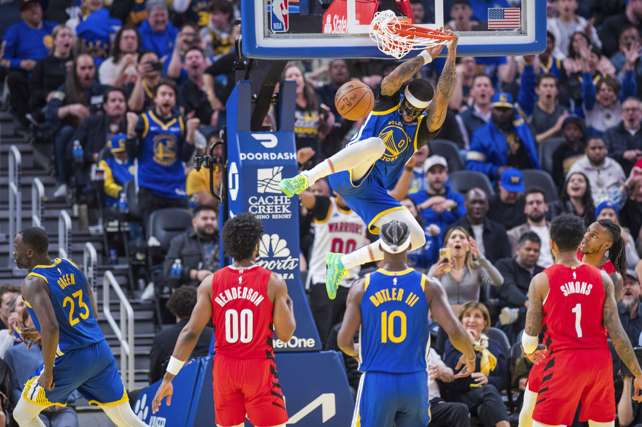 柯瑞此戰包辦5記外線、攻下24分,後場新星穆迪(Moses Moody)與射手希爾德(Buddy Hield)各貢獻20分,後者還投進6顆三分,並送出本季新高的7助攻。