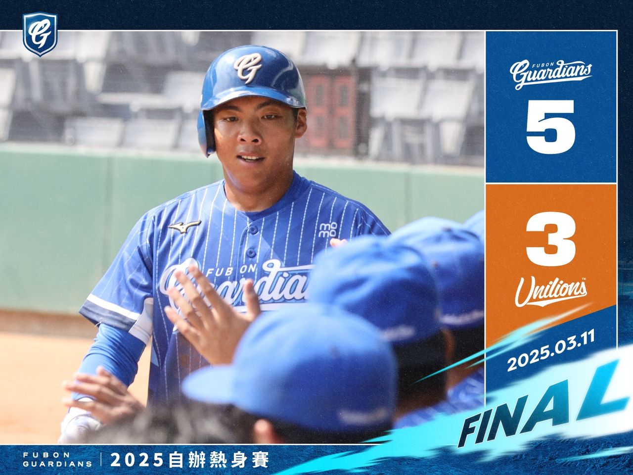▲悍將5比3勝統一獅,熱身賽8連不敗,張洺瑀(原名張冠廷)雙安。(圖/富邦悍將提供)