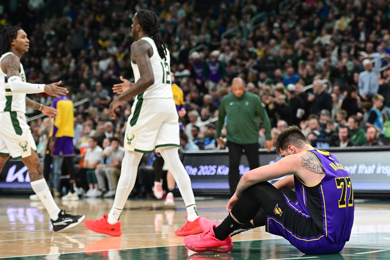 「金童」唐西奇(Luka Doncic)今(14)日狂轟45分、11籃板,創下湖人生涯單場最高得分,但湖人仍以106比126不敵公鹿,苦吞3連敗。密爾瓦基王牌「字母哥」安戴托昆波(Giannis Antetokounmpo)則繳出24分、12籃板、9助攻的全面表現,帶領公鹿終結3連敗,在主場輕鬆取勝。
