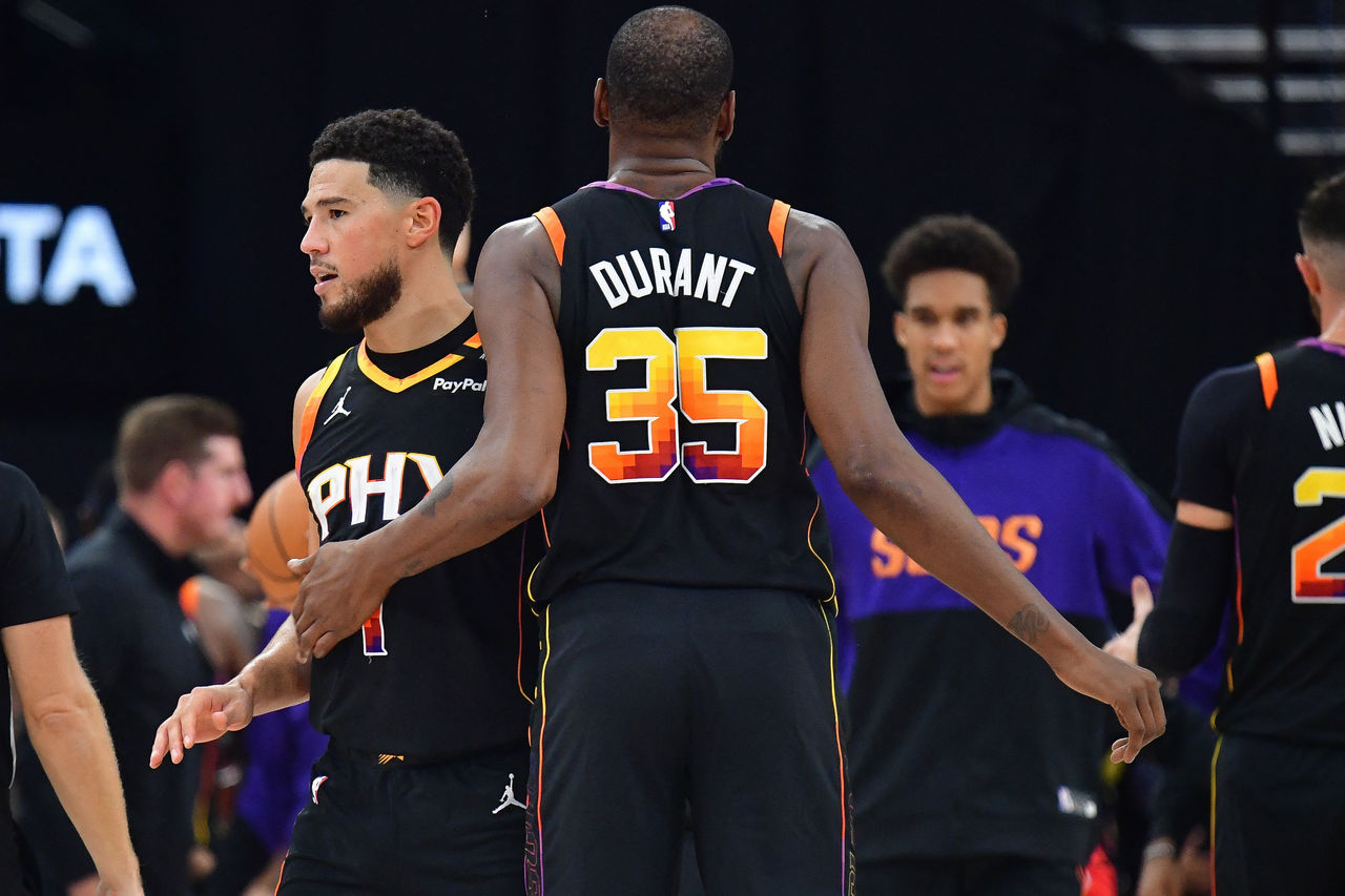 ▲杜蘭特、布克今夏可能拆夥。(圖/達志影像/美聯社)