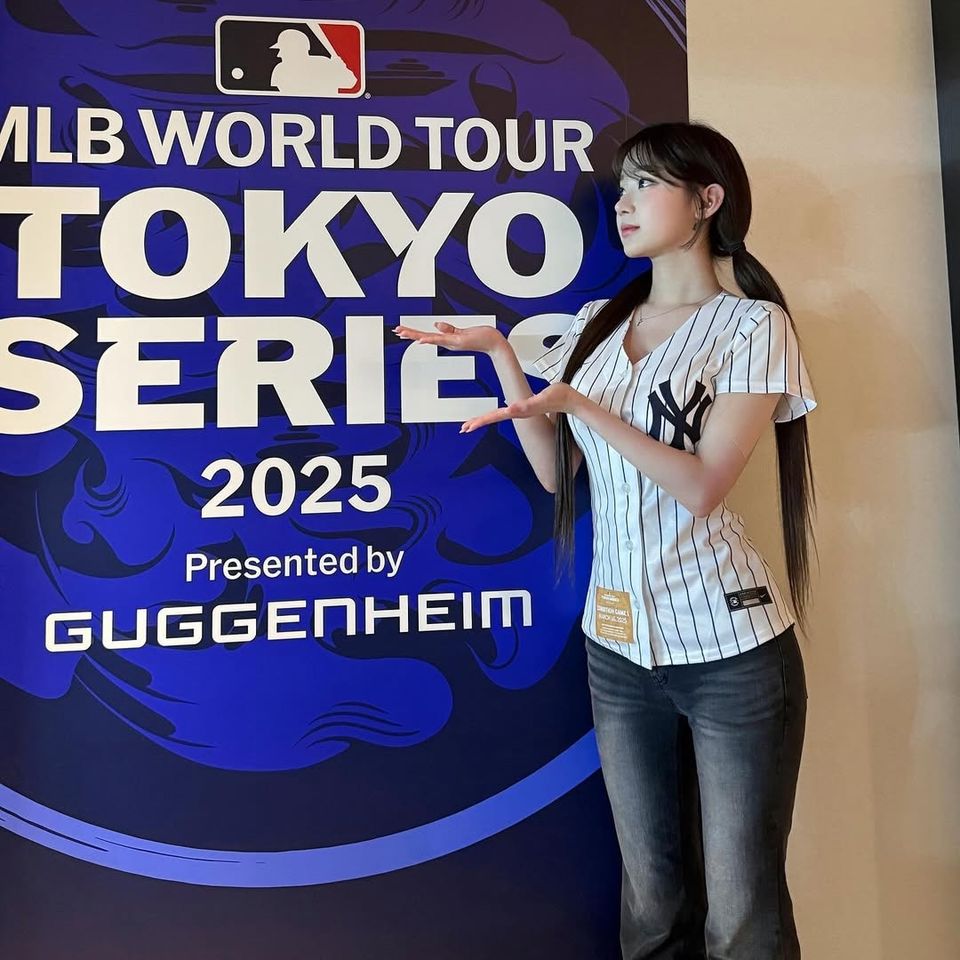 李珠珢近期與富邦育樂簽下全經紀約,正式成為富邦啦啦隊Fubon Angels的一員。13日才剛在台北舉辦加盟儀式的她,隨即啟程前往日本,並應MLB Korea之邀,於東京巨蛋觀賞大聯盟海外賽的熱身賽。她身穿洋基隊條紋球衣,綁著雙馬尾,在場館內開心拍照留念。
