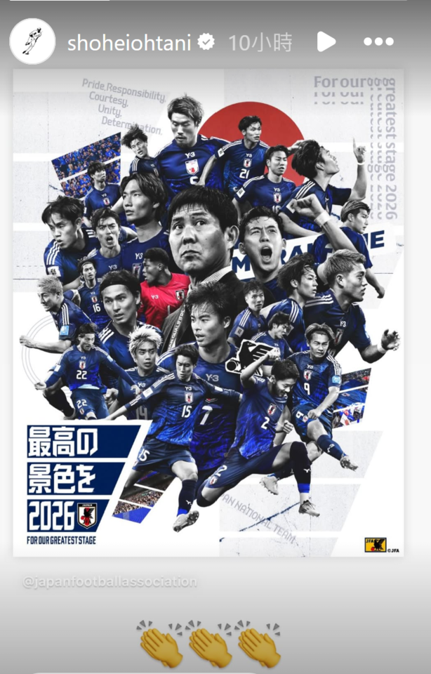 ▲大谷翔平祝賀日本男足晉級世界盃會內賽。(圖/翻攝自IG/shoheiohtani)