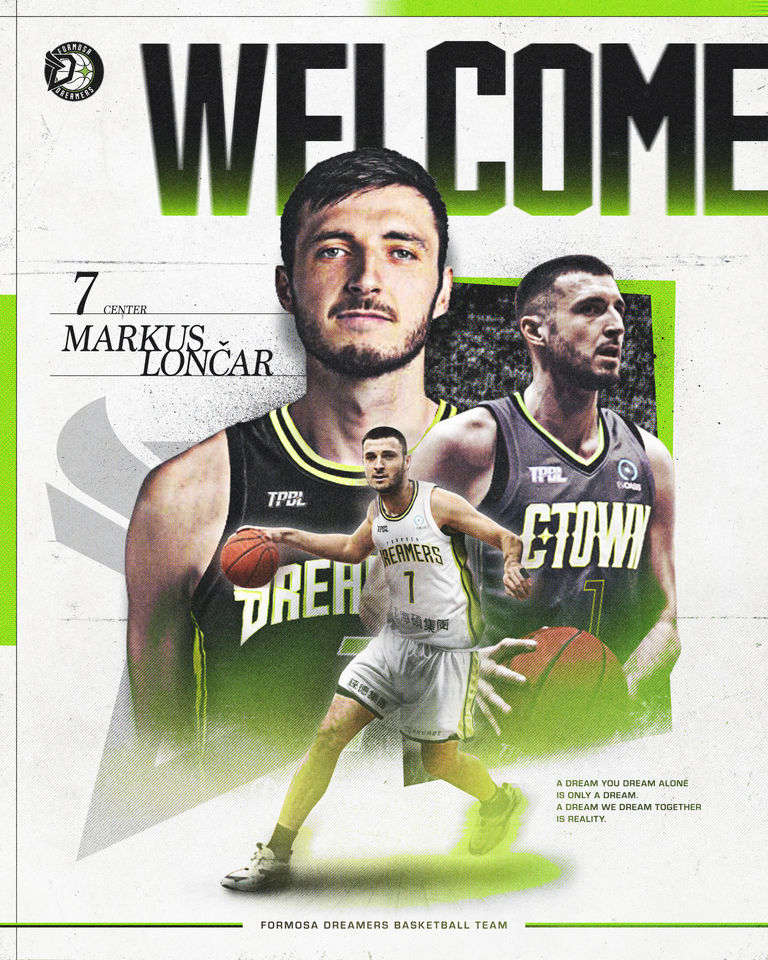 福爾摩沙夢想家球團今(25)日正式宣布213公分洋將馬可仕・龍查(Markus Lončar)加盟,幫忙分擔高柏鎧的禁區壓力。