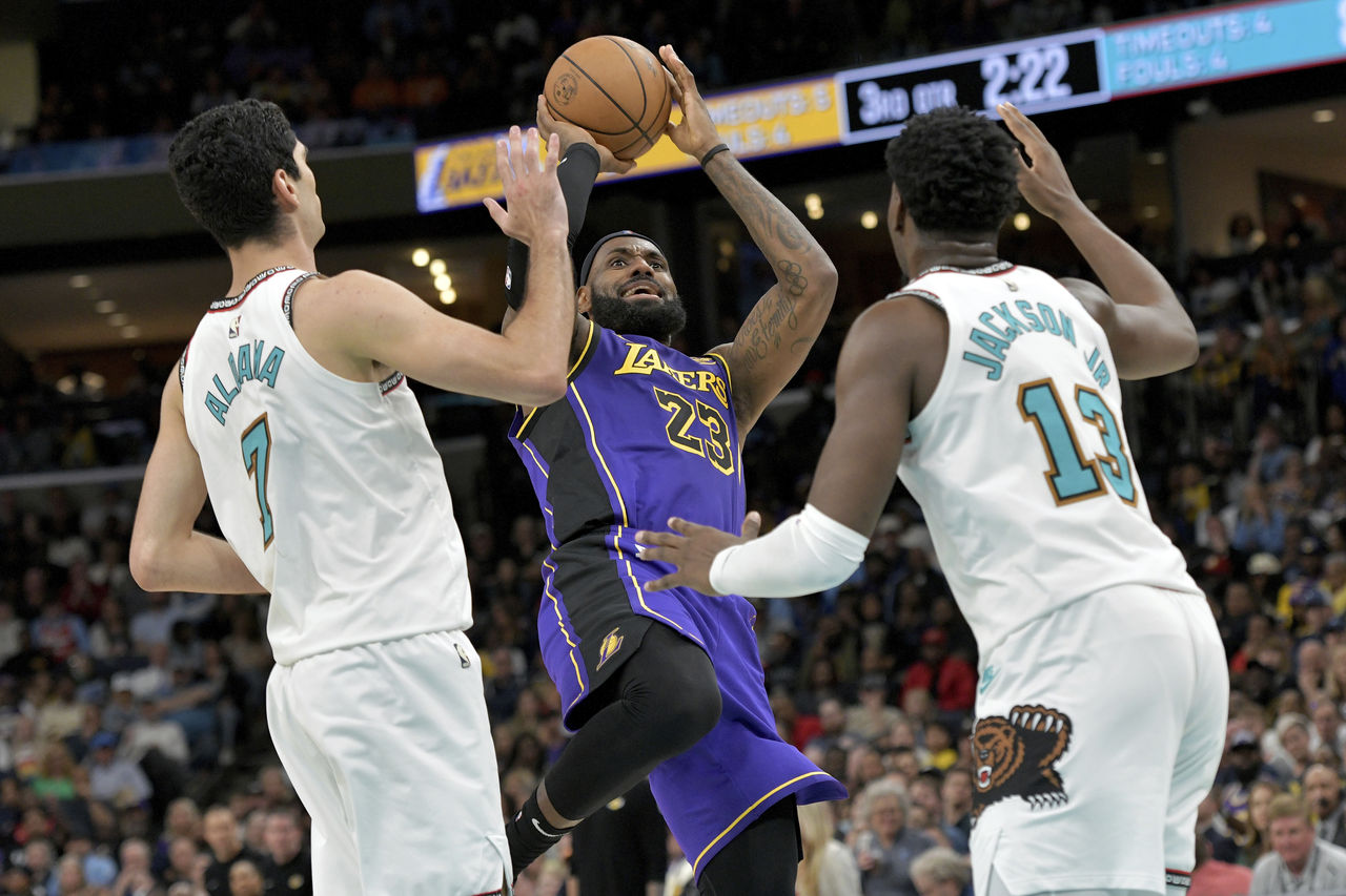 洛杉磯湖人30日作客曼菲斯灰熊,灰熊昨日無預警撤換主帥情況下,此戰雖然與紫金軍團一路鏖戰,但湖人天王球星詹姆斯(LeBron James)不僅達成「生涯42000分」里程碑,全場更砍下25分、6籃板、8助攻、3抄截,加上決勝期多人挺身而出搶分,最終湖人134比127贏球,戰績也超車灰熊,暫居西區第4位。