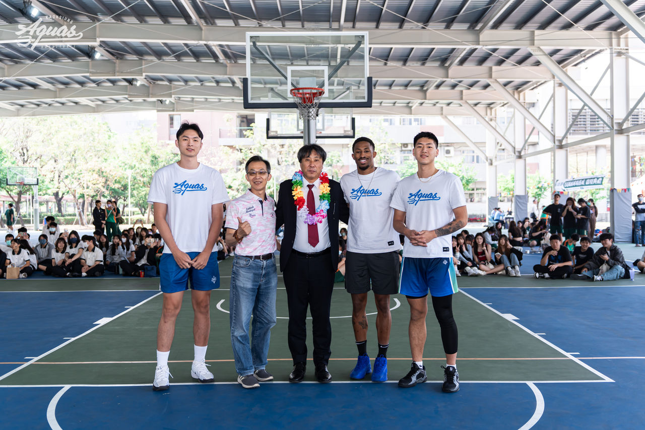 校慶日當天高餐大附中特別邀請遠從日本南部造訪的姊妹校,和歌山縣立南部高等學校辻強志校長擔任開球嘉賓,邱子軒、呂威霆、克雷格在3對3示範賽中與同學組隊互動,也讓同學們留下難得回憶。