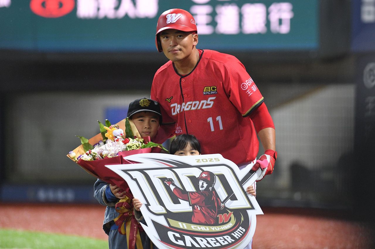 ▲朱育賢開轟達成生涯千安。(圖/味全龍隊提供)