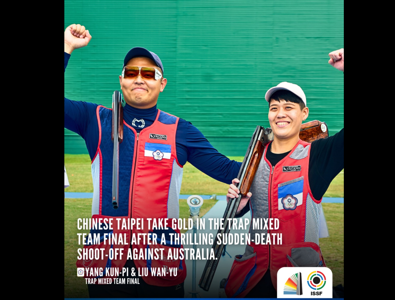 楊昆弼、劉宛渝過去就曾在國際賽聯手摘金,曾於2021年拿坡里世大運勇奪混合團體金牌,本屆世界盃再度攜手出擊,預賽中兩人各擊中72個泥盤,以總分144分晉級金牌戰。