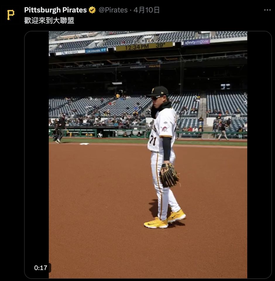 ▲海盜官方社群以繁體中文歡迎鄭宗哲。(圖/截自X:Pittsburgh Pirates)