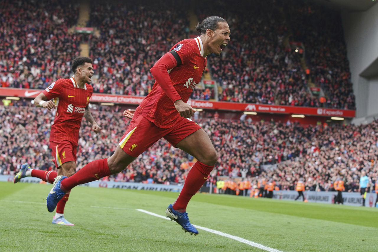 英超第32輪焦點戰,榜首利物浦今(14日)坐鎮主場交手聯盟弱旅西漢姆聯,利物浦憑藉著前鋒迪亞斯(Luis Díaz)早早進球與范戴克(Virgil Van Dijk)第89分鐘頭槌絕殺的好表現下,2比1成功奪勝積分3分全拿;利物浦只要在剩下的六輪比賽中再贏兩場,就能確定成為今年英超冠軍。