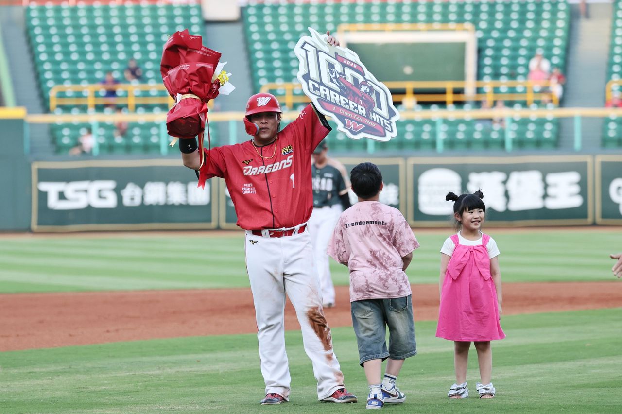 在陳子豪達成紀錄後,比賽稍作暫停,讓他的父母與兒女特別到場獻花祝賀,見證這一歷史時刻。現場台鋼球迷也報以熱烈掌聲,向這位「1號重砲」的致上誠摯祝福,畫面溫馨動人。