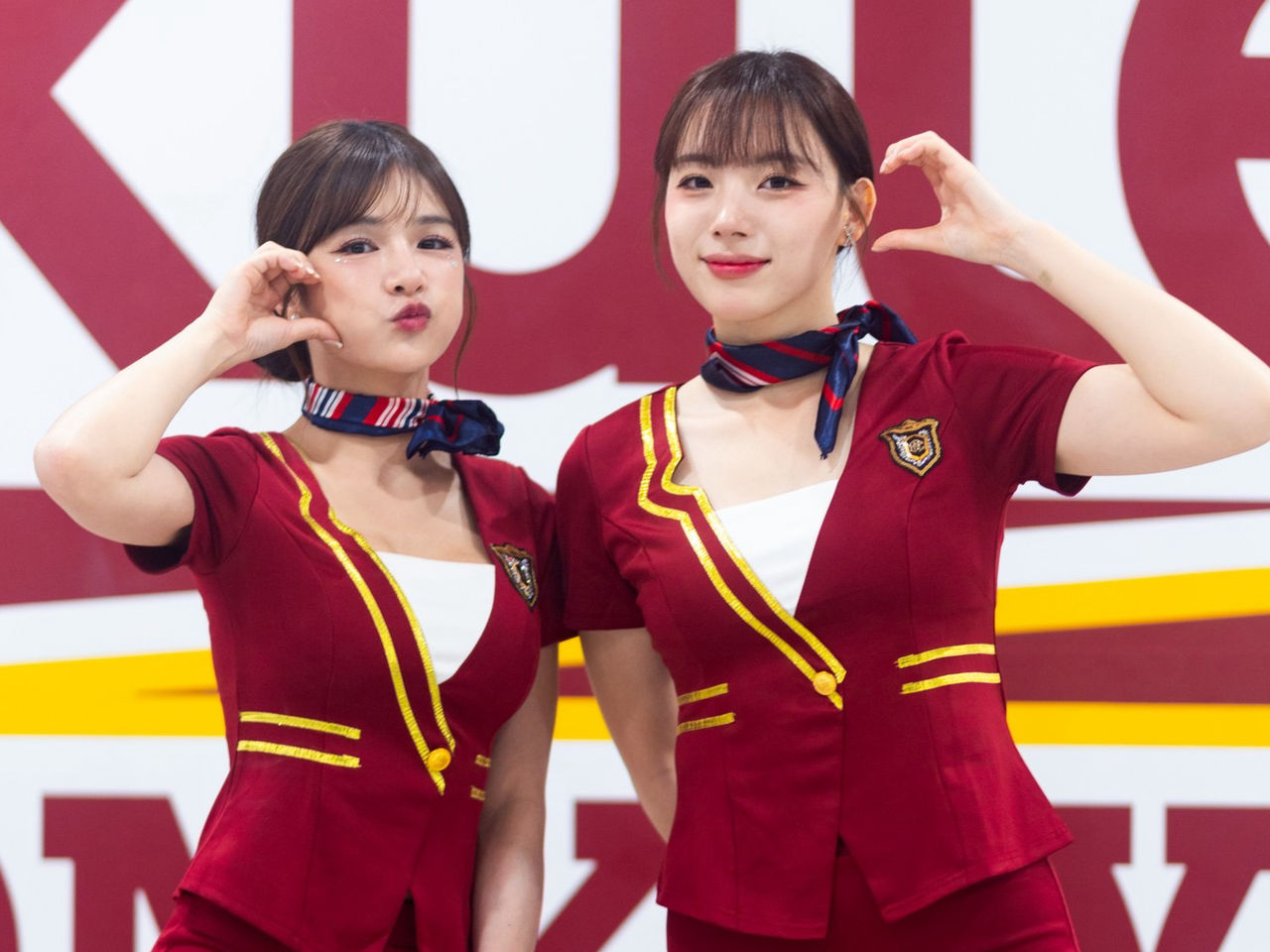 空姐造型讓網友大讚「哪家航空顏值這麼高?」河智媛表示,雖然從沒夢想當空姐,但很榮幸能穿著乘務員制服為大家加油,「謝謝粉絲們告訴我,這個服裝很適合我。」而岱縈也興奮分享,「第一次穿空姐服應援超夢幻的啦!」她更透露自己小時候真的有空姐夢,但因為身高限制而放棄,沒想到能在球場上圓夢。