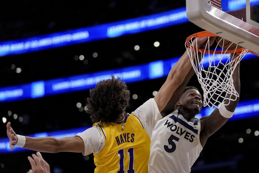 雖然西區季後賽對上洛杉磯湖人第2戰賽前,才因為首戰向場邊求名「嗆聲」遭聯盟開罰5萬美金,但明尼蘇達灰狼當家球星「蟻人」艾德華茲(Anthony Edwards)今日在G2仍繳出25分、6籃板,其中第3節一次切入後逆天滑翔重扣,更是讓場邊觀戰的灰狼老闆,前MLB美國職棒傳奇球星羅德里奎茲(Alex Rodriguez)都起身鼓掌叫好。