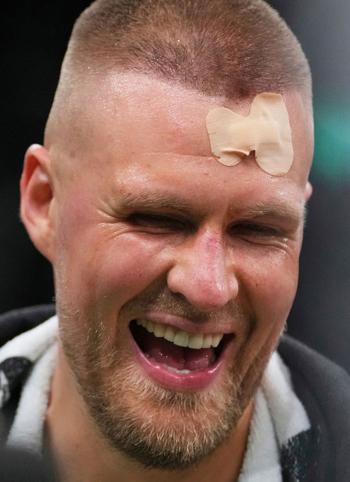 塞爾提克中鋒波辛基斯(Kristaps Porzingis)今(24)日對上魔術的季後賽第2戰中展現強悍鬥志,即使比賽中途遭遇肘擊、縫了5針,回到場上仍繳出20分、10籃板、2阻攻的雙十表現。總教練馬茲拉(Joe Mazzulla)相當佩服他的拚戰精神,還開玩笑說,「我喜歡看他在場上流血。」