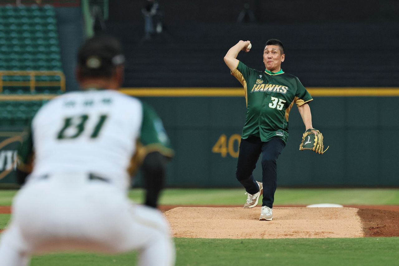 ▲台鋼雄鷹邀請陳正中開球。(圖/台鋼雄鷹提供)
