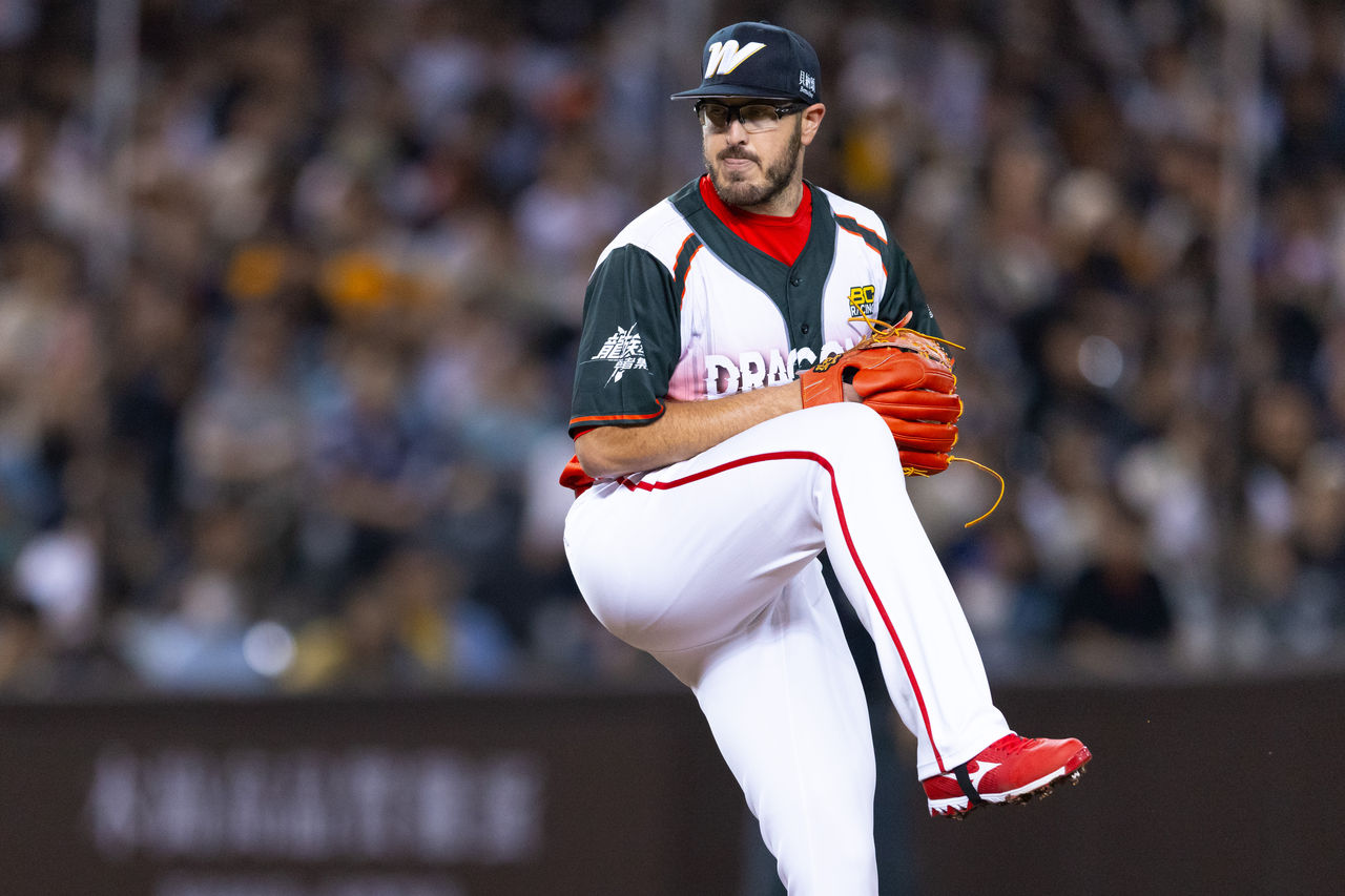 龍聖昨天投完5局退場,用了98球,59個好球,被擊出6支安打,投出6次三振,2次四壞球,2次觸身球,失5分,3分自責分,吞下來台首敗。