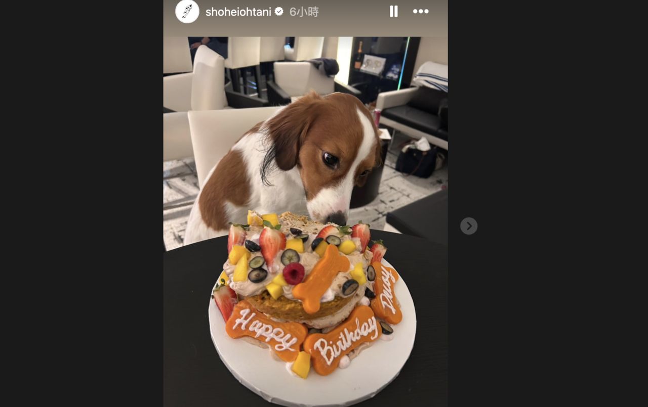 在賽前,大谷翔平在IG限時動態分享了自家愛犬(Decoy)2歲生日派對的可愛照片與影片。照片中可見為牠準備了兩個不同造型的蛋糕,Decoy開心享用蛋糕的模樣令人融化,還有一張牠鼻子沾著奶油、與蛋糕合影的趣味畫面,吸引大量粉絲留言。