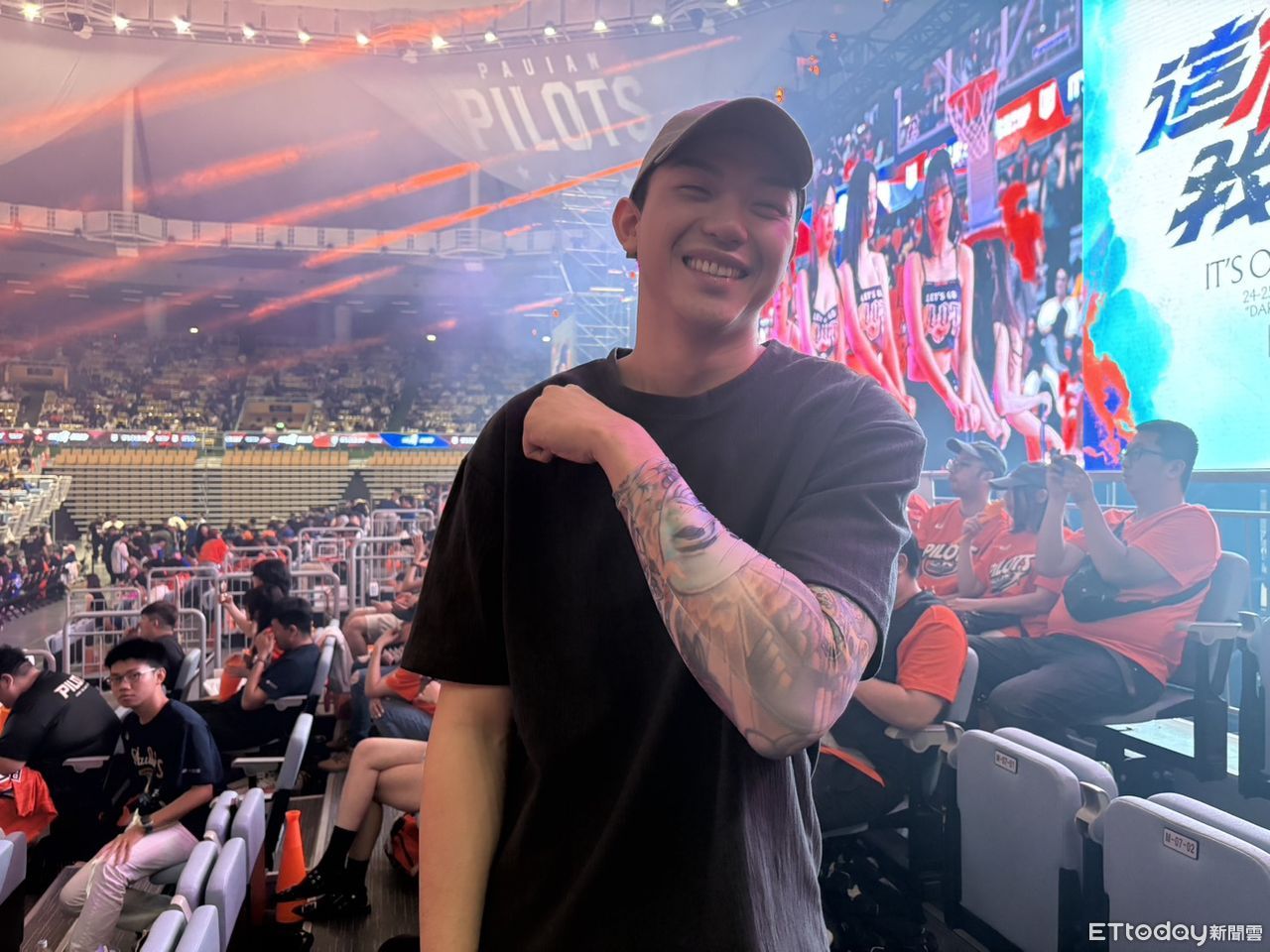 今日現身PLG總冠軍第7戰現場,曾祥鈞卻相當逗趣的戴著大學隊友,領航猿王牌球星「夜王」盧峻翔的「包手」刺青袖套觀戰,曾祥鈞笑說,「袖套是我大學同學給我的,今天正好有時間就來現場觀看比賽。」