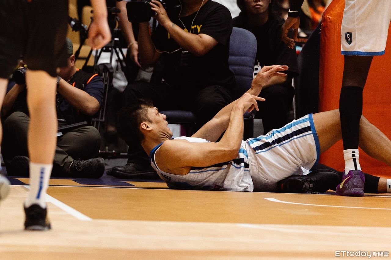 ▲42歲的「野獸」林志傑在總冠軍第7戰拚到左手腕骨折,賽後緊急送醫。(圖/記者杜奕君攝)