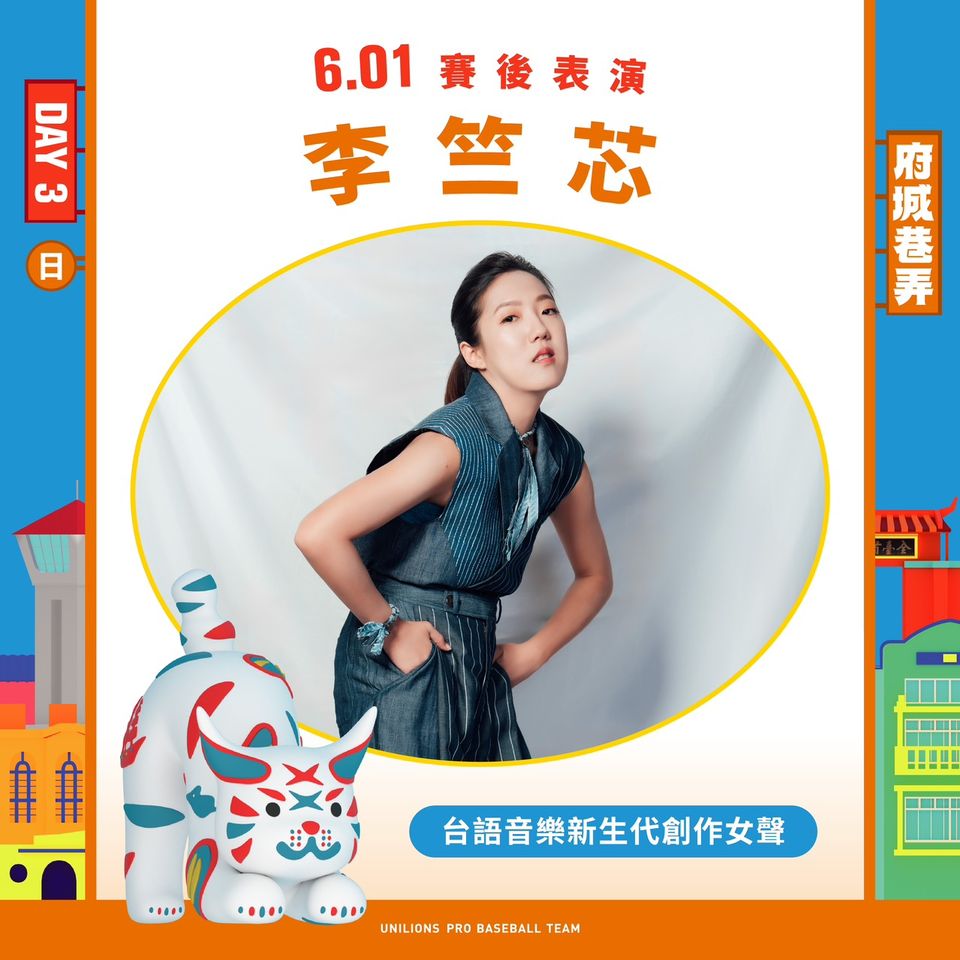 音樂與棒球的交會,將在6月1日賽後上演,邀請球迷一同走進球場,聆聽李竺芯唱出屬於府城的故事。