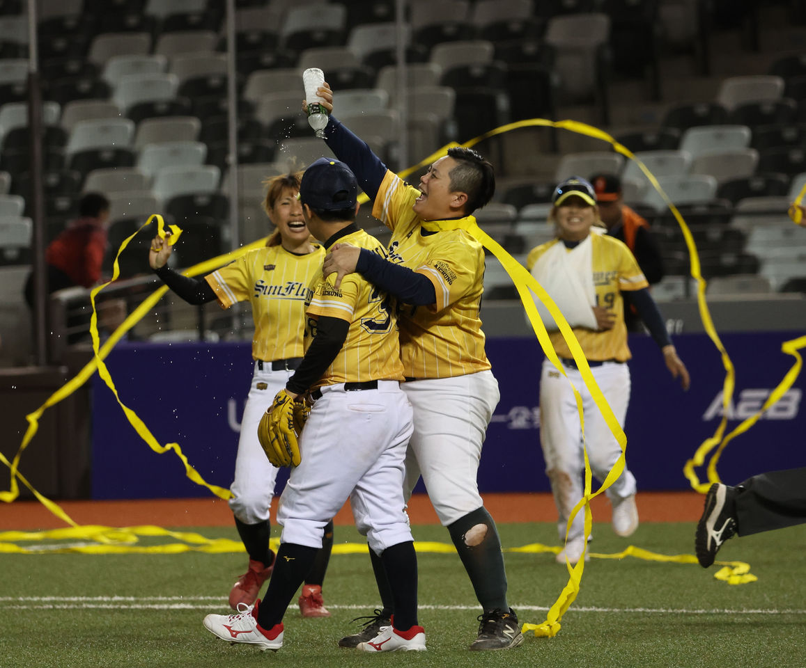 世壯運棒球公開女子組35+昨日在臺北大巨蛋進行冠軍戰,這也是女子棒球首次在大巨蛋比賽。由臺中向日葵OB隊克服首局10分落後,完成驚天大逆轉,終場以15:14力克跑跑人女子棒球俱樂部,以4戰全勝之姿笑納金牌,貢獻勝投的李秋靜直說,「這個是12強賽才能站的地方,我們小小人物有這個機會,真的很開心啊,晚上做夢都會笑了。」