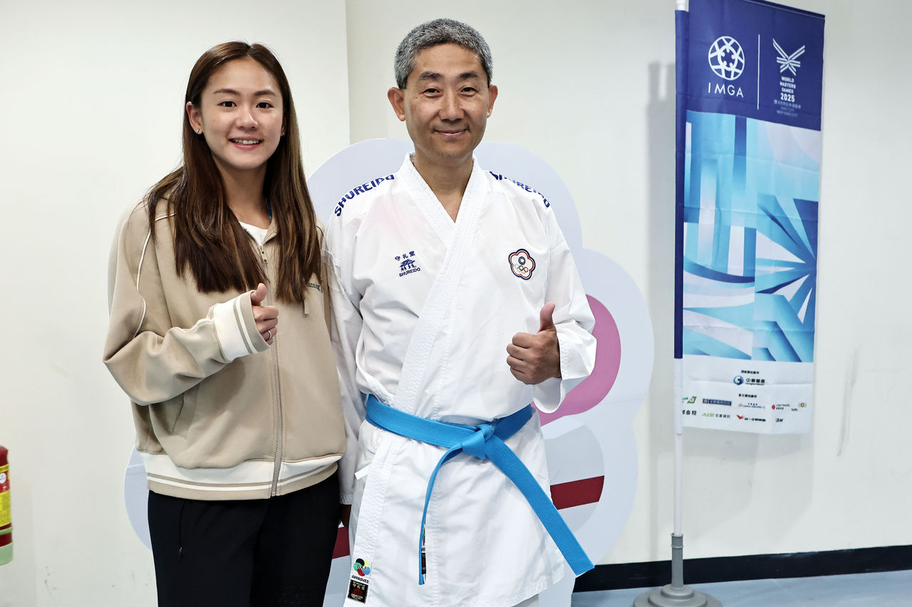 ▲「空手道小清新」文姿云在世壯運化身教練,陪恩師趙志才完成參加國際賽的夢想。(圖/2025雙北世壯運執委會提供,下同)