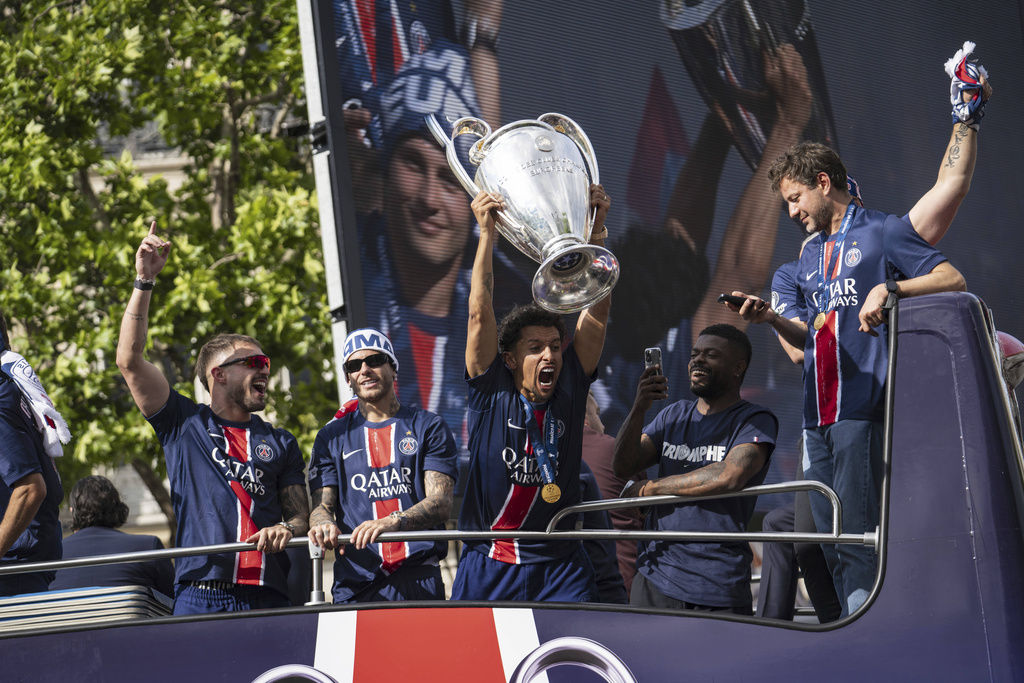 1日凌晨PSG在2025年歐洲冠軍聯賽決賽中,壓倒性以5比0擊敗義甲雄獅國際米蘭,隊史首次問鼎歐冠冠軍,正式登上歐洲之巔;隔天球隊直奔法國香榭麗舍大道,準備舉辦巴士遊行,與球迷一同狂歡。